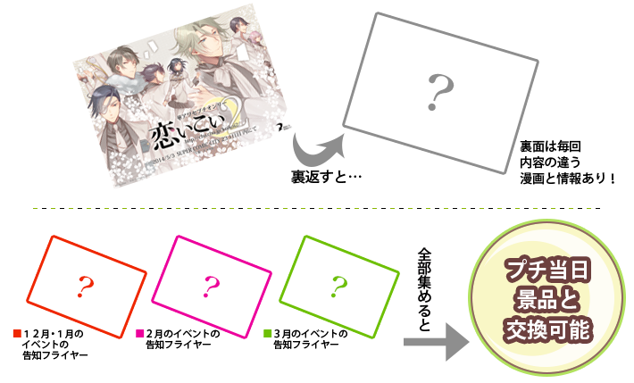 この3種類すべてのフライヤーを集めて、5月のプチオンリー当日に本部にお持ちくださると、景品と交換が可能です。